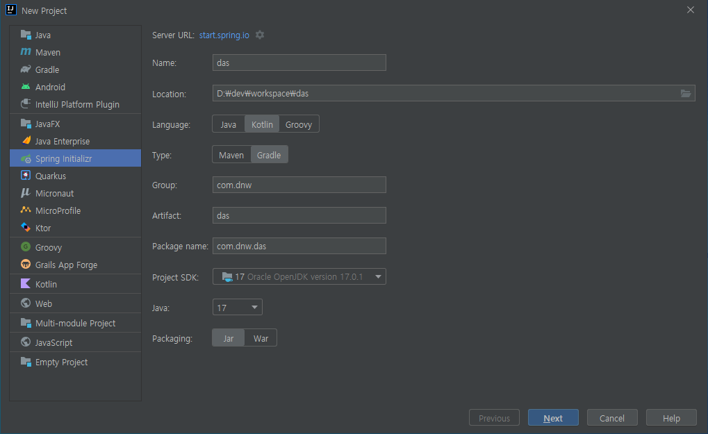 gradle 확인하면 기존 springboot(java) 프로젝트와 다른점이 있는데